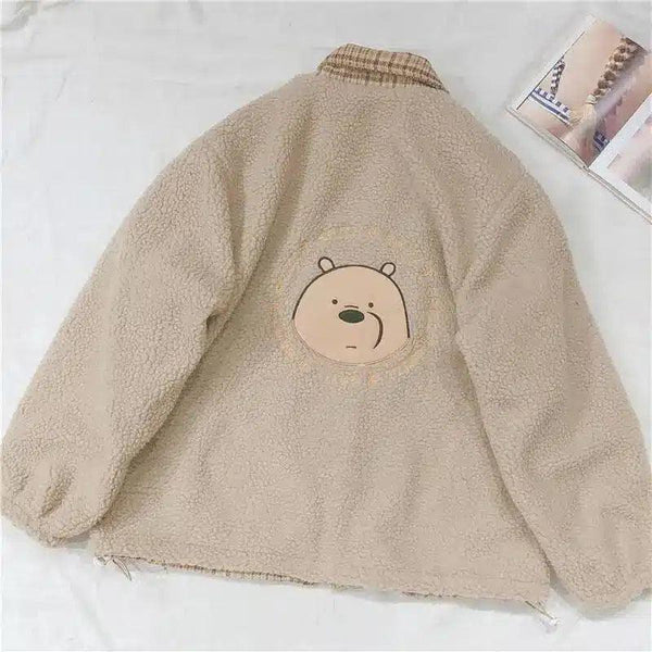 Medve hímzett bárányszőrme kockás kabát