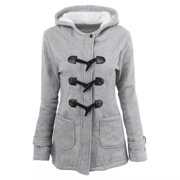 meleg téli szőrme gallér kabátok női új szarv gomb Hosszú