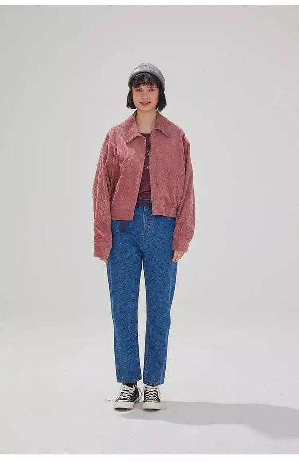 Laza kordbársony kabát laza farmerrel