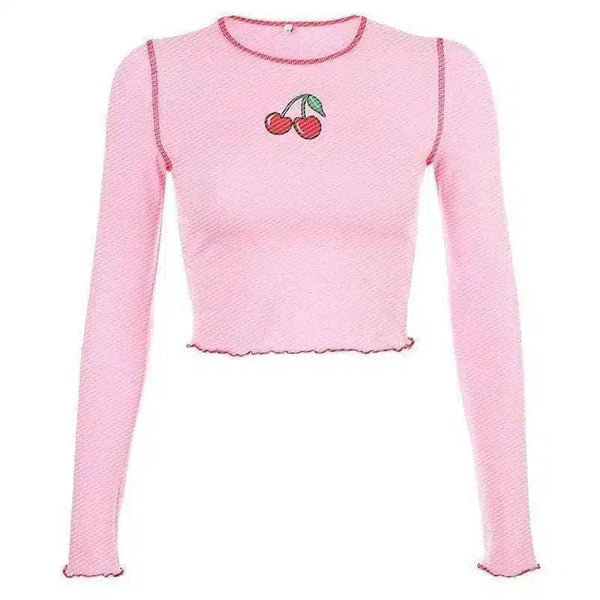Női hosszú ujjú Crop Top cseresznyés mintával