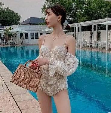Női egyrészes hosszú ujjú hasi fedelet vékony fürdőruha
