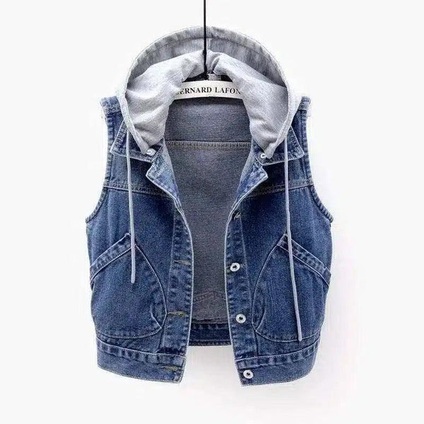 Női farmer mellény rövid All-match laza illeszkedő külső mellény