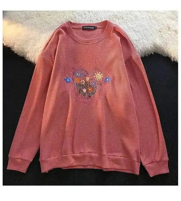 Hímzett Crew nyakú hosszú ujjú pulóver