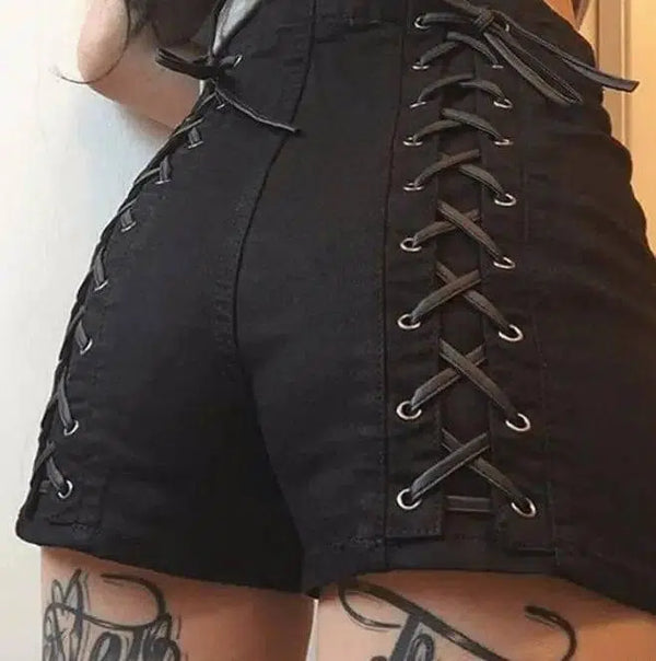 Termékleírás: Női szolid rövidnadrág Criss Cross Bandage REGULAR magas derékrész