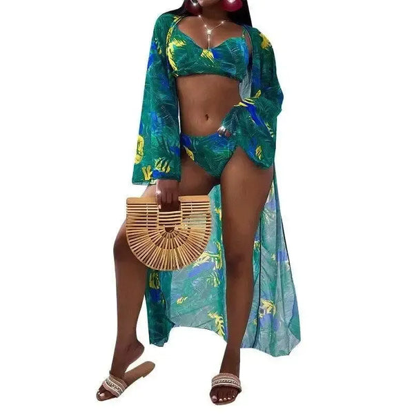 Női háromrészes nyomtatott bikini Split fürdőruha Nők