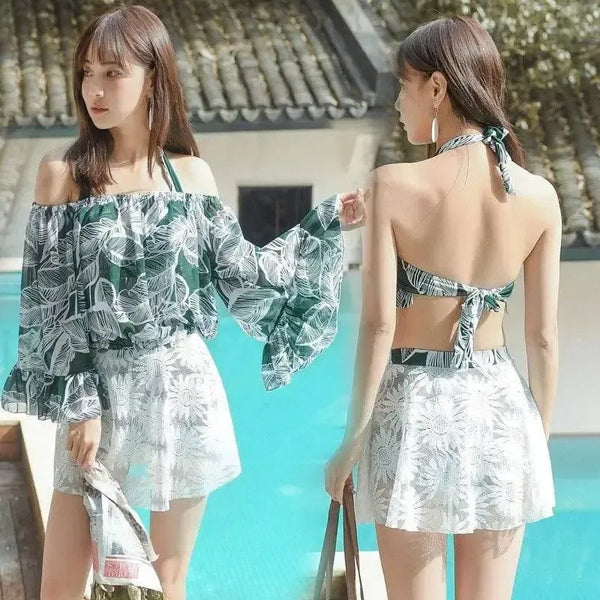 - Komponensek: Tartalmaz egy támogató bikinifelsőt, egy középmagas alsó részt és egy stílusos takarót.