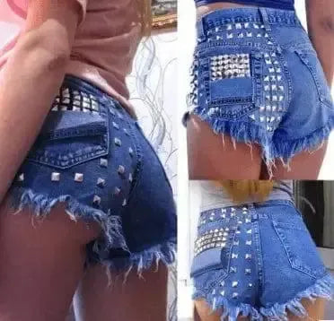 Női szakadt farmer buggyos rövidnadrág szegecses forró nadrágok