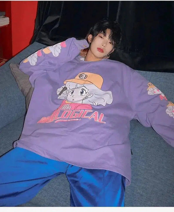 Nyomtatott laza hosszú ujjú póló férfiaknak
