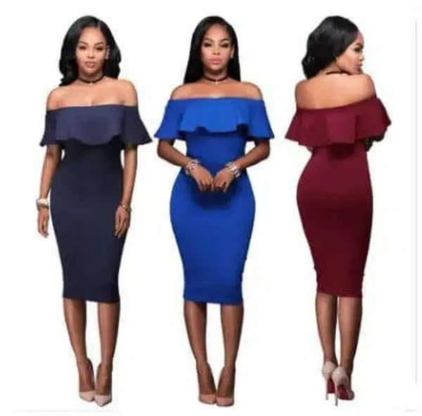 - Stílus: Fodros ruha: Off Shoulder Ruffles ruha Elegáns fodros részletekkel Váll nélküli ruha