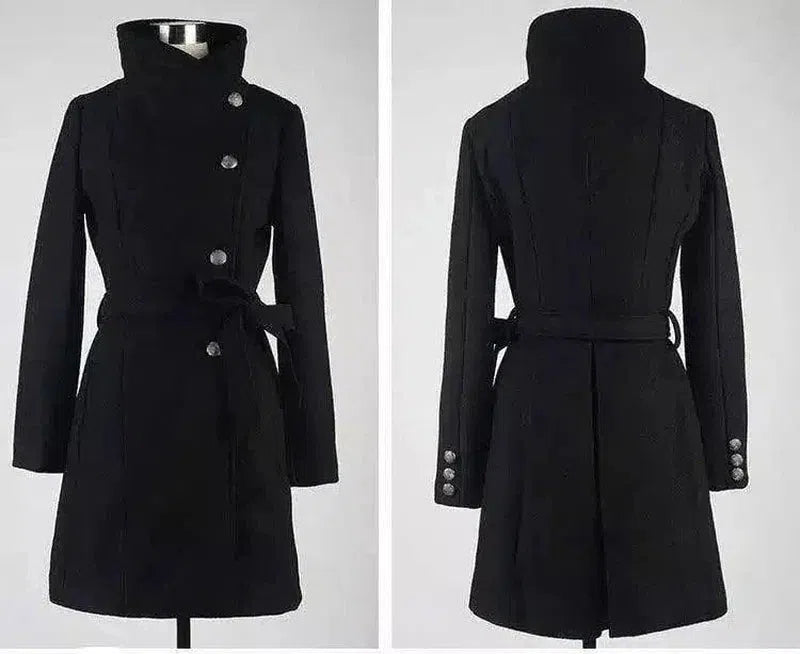 - Nyakvonal: Magas nyakú, gombos gallérral