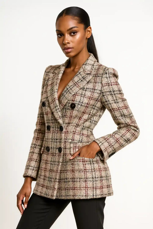 Plaid textúra blézer női ruházat