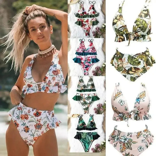 Fodros bikini magas derekú, nyomtatott fürdőruha