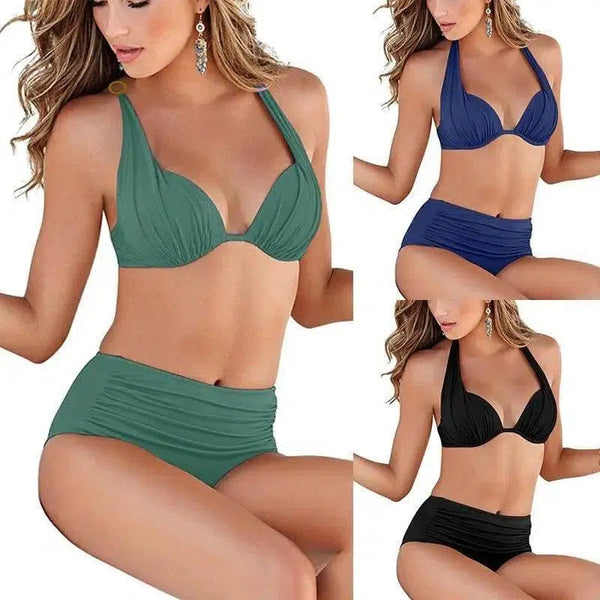 Fodros, fodros, merevített, egyszínű, magasított fürdőruha