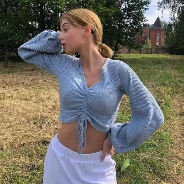 Világoskék, fodros Crop Top - Divatos és kényelmes