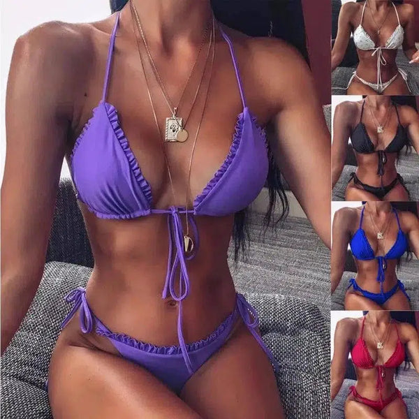 Kis fodros, kétoldalas, nyomtatott, hasított bikini