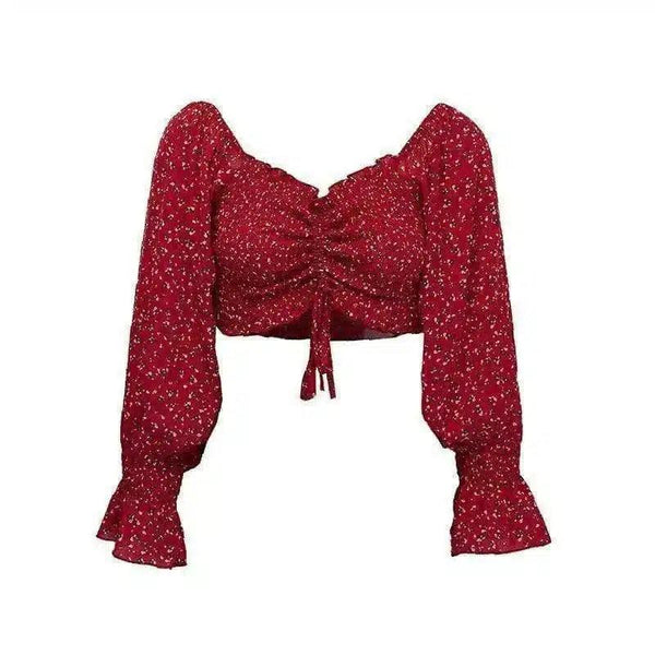 Virágos, hosszú ujjú Crop Top hosszú ujjakkal