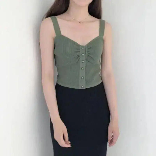 Női ujjatlan, gombos Crop Top