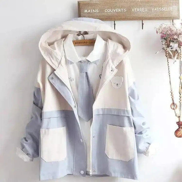 - Design részletek: Color Block minta, elülső zsebek, medve hímzés részletei a mellkason