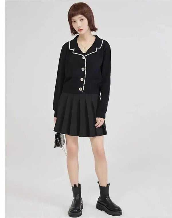Temperamentum Xiaoxiang Fekete kötött kardigán nők laza