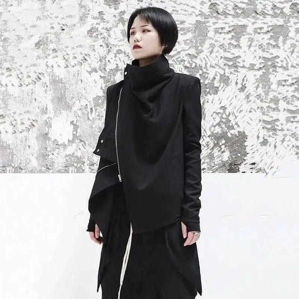 Garbó hosszú ujjú fekete cipzáras szabálytalan kabát