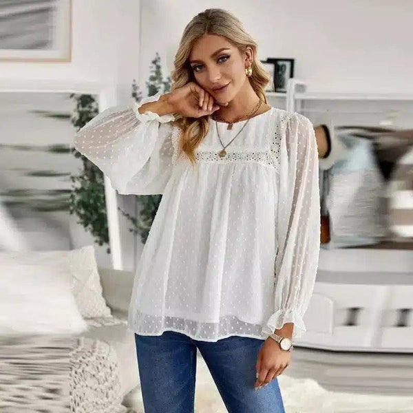 Női hosszú ujjú, áttetsző blúz csipkés részlettel