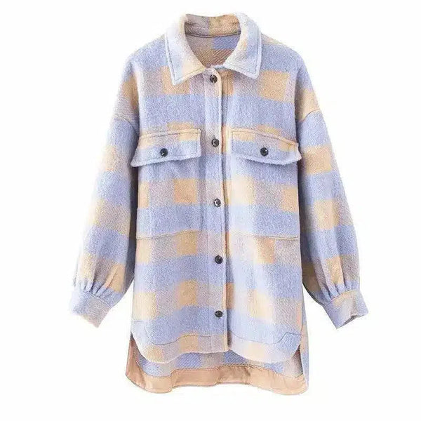 - Csikkes kockás minta: Stílusosan tűnjön ki a kabát szemet gyönyörködtető kék és bézs kockás mintájával, amely időtlen minta klasszikus bájt kölcsönöz minden öltözéknek.