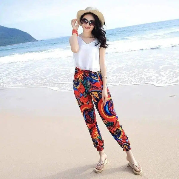 új nemzeti stílusú nyomatok, nadrágok, nagyméretű, női nadrágok