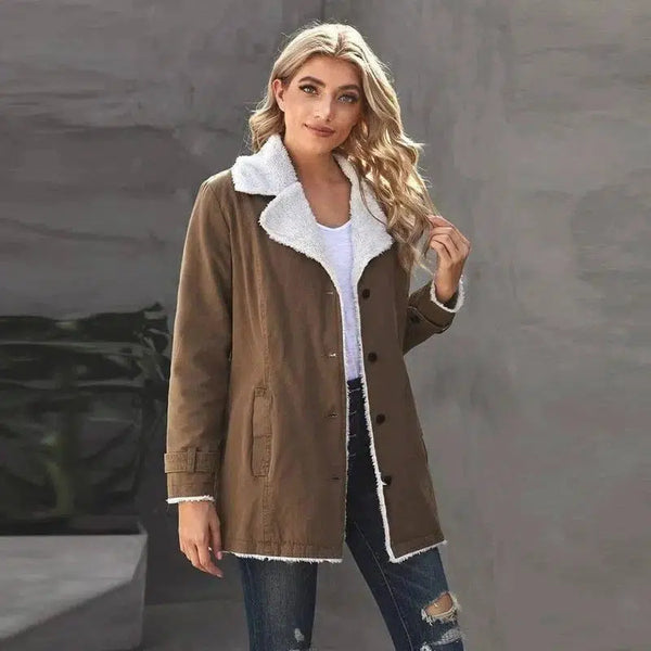 Bársony kabát Női határon átnyúló középhosszúságú pamut pamut hajtókával