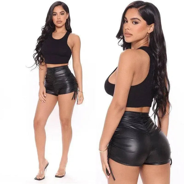 Női divat szűk rakott bőr nadrágok