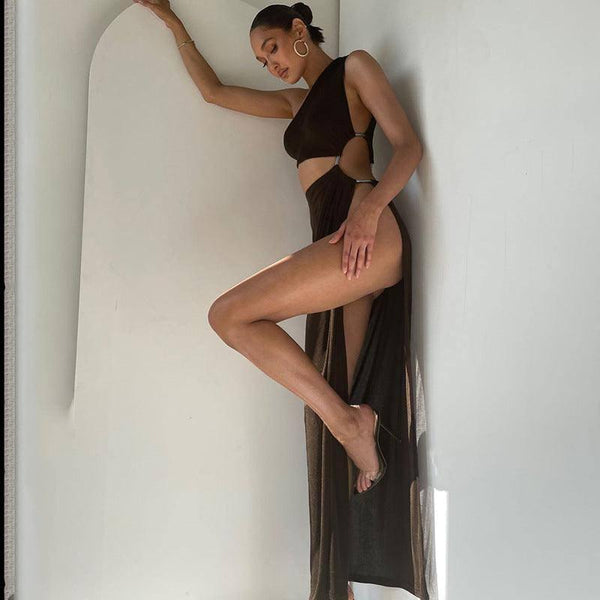 Női méltóságteljes üreges ferde vállú ruha
