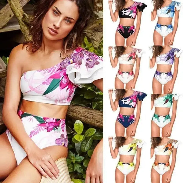 Női kétrészes fürdőruha Virágos nyomtatott fürdőruha Bikini Bikini