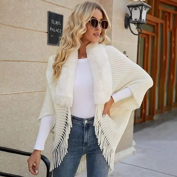 Női szőrme gallér bojtos sál kötött