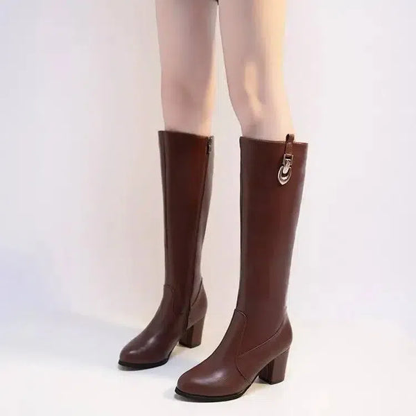 Termékleírás: Őszi és téli vastag sarkú magas sarkú hegyes magas csizma