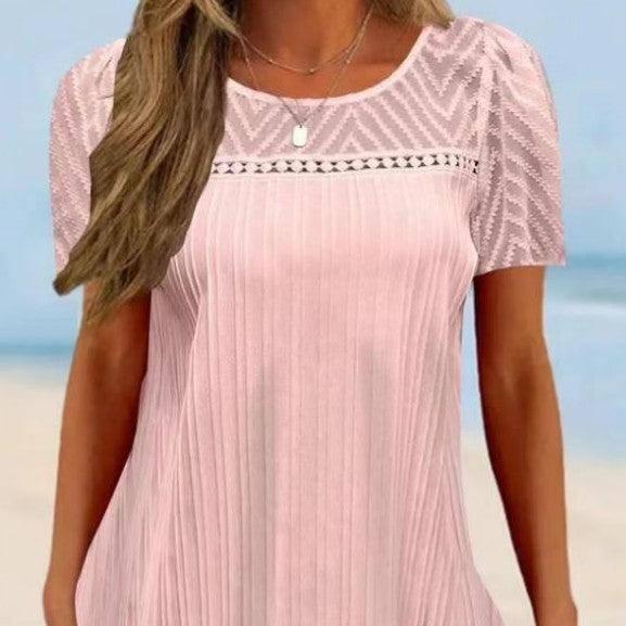 Pulóver kerek nyakú csipke Patchwork Rövid ujjú póló