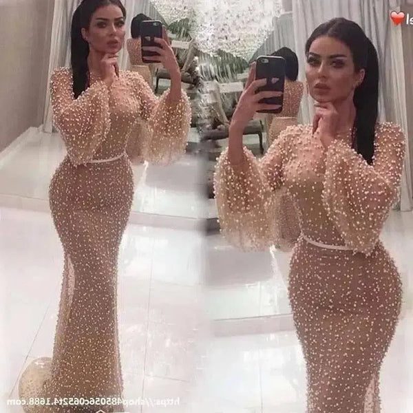 Vékony, hosszú, átlátszó tüll ruha hosszú ujjúval
