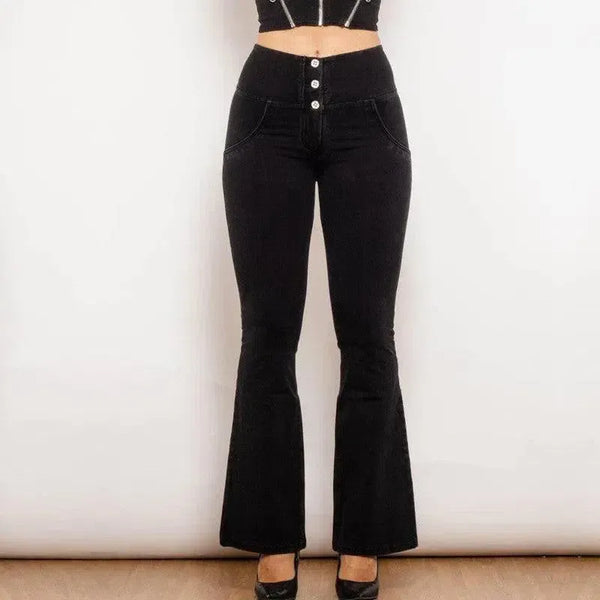 Shascullfites Melody Fekete Flared Lift Jeggings gombok felfelé