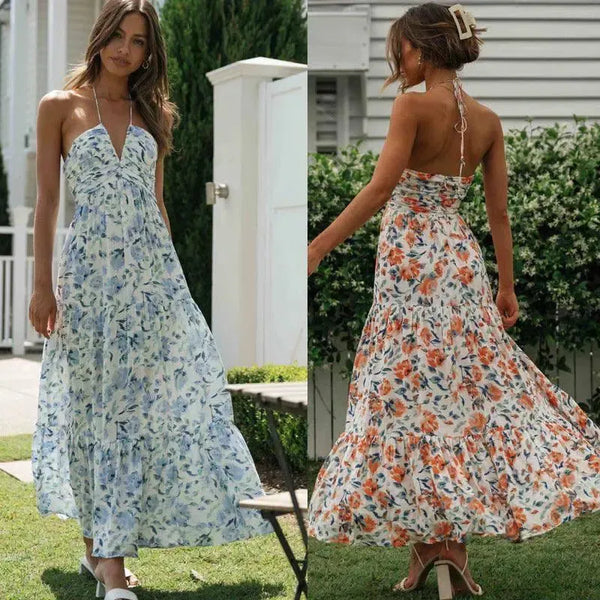 Sifon V-nyakú ujjatlan hosszú patchwork ruha
