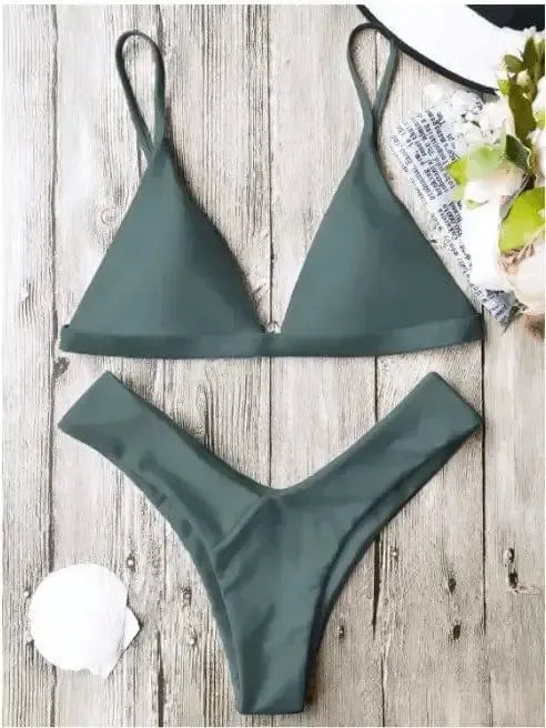 Chic Olive Triangle Bikini szett nőknek - Fürdőruházat Essentials