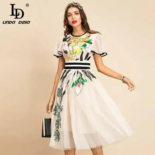 LD LINDA DELLA Új 2021 Női nyári divat kifutó Midi ruha pillangó ujjú flitteres hímzett hímzett női karcsú A vonalú ruhák