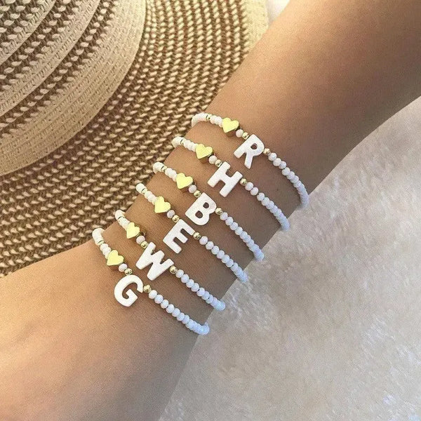 26 betűk fehér Shell gyöngyös karkötő Női fém szerelem Design karkötő ékszereket