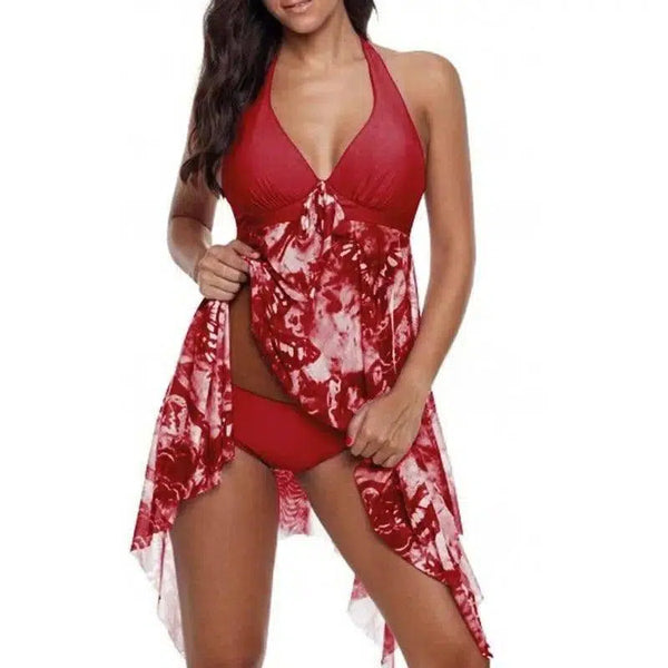 Bikini szabálytalan szegélyű, osztott virágos fürdőruha
