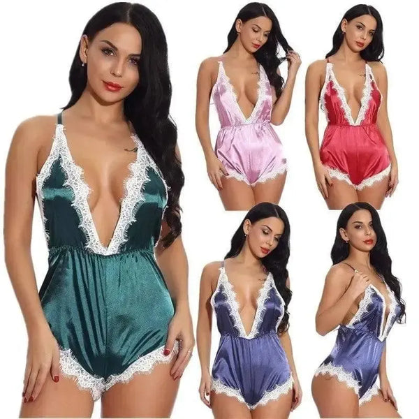 Fehérnemű szatén csipke pizsama vissza kereszt Stretch