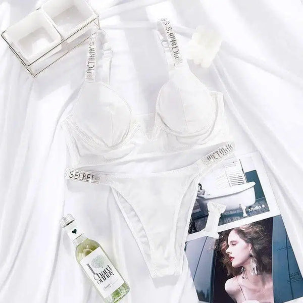Push Up Deep V Letter Strasszos melltartó szett Nők