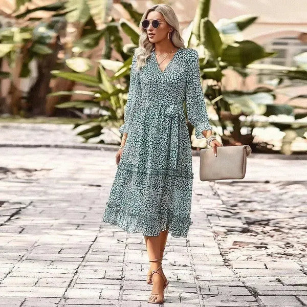 Temperamentum Elegáns V-nyakú 34 ujjú Tie-váll virágos