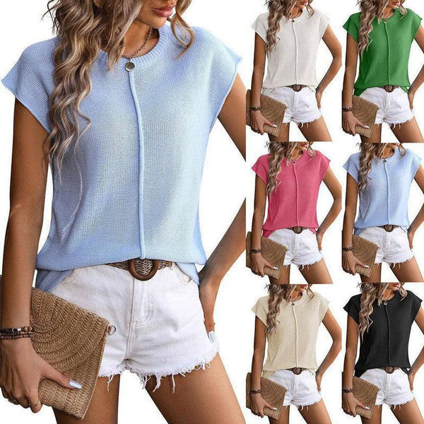 Új kötött kerek nyakú rövid ujjú felső nyári alkalmi laza laza