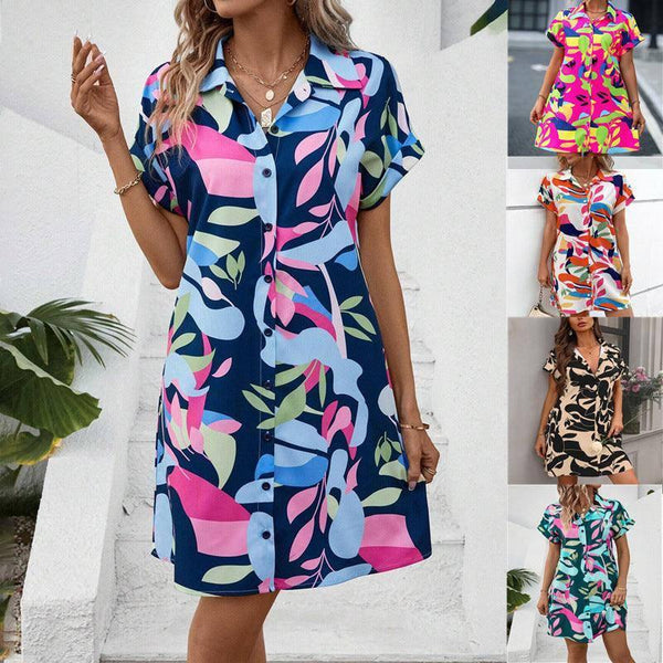 Új virágos nyomtatás rövid ujjú ing ruha nyári divat