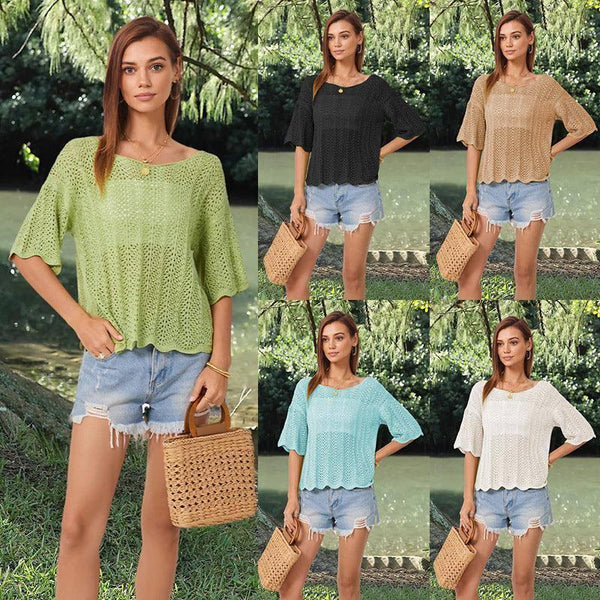 Üreges divat rövid ujjú alkalmi női kötöttáru